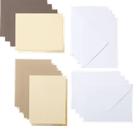 Mit dem Cricut Cut-Away Cards Neutrals A2 (10,8 cm x 14 cm) 8er-Pack machst du im Handumdrehen die schönsten Karten. Dank der aufklebbaren Bögen kannst du jeden Entwurf, den du möchtest, realisieren. Erstelle eine schöne Karte anlässlich eines Geburtstags, zu Weihnachten oder als Dankeschön. Die Möglichkeiten sind unendlich. Du klebst einen farbenfrohen Bogen auf die Innenseite der Karte und klebst die Karte auf deine Kartenschneidematte. Hast du eine Cricut Joy? Dann verwende die Cricut Joy Kartenschneidematte. Mit dem Cricut Maker oder Explore verwendet man die Cricut 2x2 Kartenschneidematte. Anschließend schneidet deine Cricut deinen Entwurf heraus. Mit dem goldfarbenem Glitzerbogen kannst du eine schöne, zweifarbige Karte erstellen. Kreiere auf deine Art Tiefe und lasse deinen Text oder dein Bild noch mehr in den Mittelpunkt rücken. In diesem 8er-Pack befinden sich auch acht Umschläge, in denen du deine Karten direkt verschicken kannst.