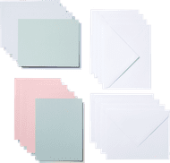 Mit dem Cricut Cut-Away Cards Pastel A2 (10,8 cm x 14 cm) 8er-Pack machst du im Handumdrehen die schönsten Karten. Dank der aufklebbaren Bögen kannst du jeden Entwurf, den du möchtest, realisieren. Erstelle eine schöne Karte anlässlich eines Geburtstags, zu Weihnachten oder als Dankeschön. Die Möglichkeiten sind unendlich. Du klebst einen farbenfrohen Bogen auf die Innenseite der Karte und klebst die Karte auf deine Kartenschneidematte. Hast du eine Cricut Joy? Dann verwende die Cricut Joy Kartenschneidematte. Mit dem Cricut Maker oder Explore verwendet man die Cricut 2x2 Kartenschneidematte. Anschließend schneidet deine Cricut deinen Entwurf heraus. Erstelle mit den Pastellfarben eine schöne, zweifarbige Karte mit einem holografischen Effekt. Kreiere auf deine Art Tiefe und lasse deinen Text oder dein Bild noch mehr in den Mittelpunkt rücken. In diesem 8er-Pack befinden sich auch acht Umschläge, in denen du deine Karten direkt verschicken kannst.