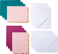 Mit dem Cricut Cut-Away Cards Corsage A2 (10,8 cm x 14 cm) 8er-Pack machst du im Handumdrehen die schönsten Karten. Dank der aufklebbaren Bögen kannst du jeden Entwurf, den du möchtest, realisieren. Erstelle eine schöne Karte anlässlich eines Geburtstags, zu Weihnachten oder als Dankeschön. Die Möglichkeiten sind unendlich. Du klebst einen farbenfrohen Bogen auf die Innenseite der Karte und klebst die Karte auf deine Kartenschneidematte. Hast du eine Cricut Joy? Dann verwende die Cricut Joy Kartenschneidematte. Mit dem Cricut Maker oder Explore verwendet man die Cricut 2x2 Kartenschneidematte. Anschließend schneidet deine Cricut deinen Entwurf heraus. So erhältst du eine zweifarbige Karte mit einem schönen Muster. Kreiere auf deine Art Tiefe und lasse deinen Text oder dein Bild noch mehr in den Mittelpunkt rücken. In diesem 8er-Pack befinden sich auch acht Umschläge, in denen du deine Karten direkt verschicken kannst.