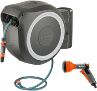 Die Gardena Wandschlauchbox 15 RollUp S Weiß + Gardena Classic Multifunktionsbrause erleichtert dir die Gartenarbeit beträchtlich. Dieses Set ist für Gärtner mit einem kleinen Garten gedacht. Neben der Wandschlauchbox erhältst du die Gardena Classic Multifunktionsbrause, die mit ihren drei verschiedenen Strahlen deine Pflanzen und Blumen mühelos bewässert. Die Wandhalterung befestigst du problemlos an der Wand. Dann schiebst du die Box hinein, die du um 180 Grad drehen kannst. Der 15 Meter lange Schlauch ist lang genug, um den ganzen Garten zu gießen. Bist du fertig? Dann musst du den Schlauch nicht per Hand aufrollen. Du ziehst einfach am Ende und die Wandschlauchbox rollt den Schlauch automatisch ordentlich auf.