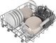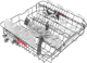 Ich stelle die Spülmaschine sehr flexibel ein. Für mein Besteck habe ich sowohl einen Besteckkorb als auch oben eine Besteckschublade. Bei größeren Mahlzeiten nehme ich den Besteckkorb immer heraus. Dadurch habe ich im Unterkorb mehr Platz für Pfannen, Teller und Auflaufformen. Ich sehe, dass eine Seite der Besteckschublade etwas höher ist als die andere. Praktisch, denn so passen auch meine größeren Trinkgläser in die Spülmaschine. Für meine Wasserflaschen klappe ich auch die Besteckschublade herunter. Dadurch habe ich zusätzlichen Platz.