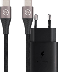 BlueBuilt Power-Delivery-Ladegerät 30 W + USB-C-Kabel 1,5 m Nylon Schwarz
