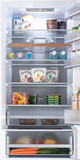 Der Wisberg WBKVC200ANFZ ist eine sehr energieeffiziente Kühlgefrierkombination mit Energieeffizienzklasse A. Mit dieser sparst du über die Lebensdauer des Geräts im Durchschnitt 750 Euro an Stromkosten. Der Kühlteil bietet 264 Liter Fassungsvermögen, wodurch du genug Platz für einen Lebensmittelvorrat hast. Das ist angenehm, wenn du Einkäufe für mehrere Tage machst oder eine Party organisierst. Der Kühlschrank hat eine Frischhaltezone, in der sich Fleisch, Fisch, Obst und Gemüse länger halten. Das heißt, du musst dein Lachsfilet nicht so schnell wegwerfen und Gurken bleiben knackig. Wein- und Wasserflaschen bringst du im Flaschenhalter liegend sicher unter. Der Gefrierteil bietet mit 113 Litern Fassungsvermögen Platz für deine Lieblingspizzen, TK-Gerichte und Backofenpommes. Dank No Frost bleibt der Gefrierteil eisfrei und du musst ihn nicht abtauen.
