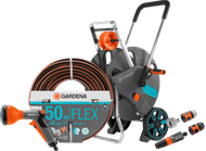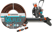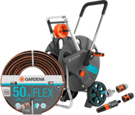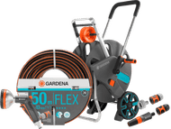 Bewässere deinen Garten sofort richtig mit dem Gardena Comfort FLEX 50 m CleverRoll L Set. Das Gardena Starterset ist im Lieferumfang enthalten. Dieses Set enthält einen Hahnverbinder, einen Adapter, einen Schlauchverbinder, einen Wasserstopp und eine Sprühpistole, sodass du sofort loslegst. Mit dem 50 Meter langen Gartenschlauch erreichst du problemlos jeden Winkel deines Gartens. Der Schlauch ist form- und druckfest, sodass du ihn auch mit einem Hochdruckreiniger verwendest. Das ist praktisch für den täglichen Einsatz im und ums Haus. Mit dem Schlauchwagen bewegst du den Schlauch mühelos im Garten. Nach dem Gebrauch verstaust du ihn schnell und ohne zu knicken.
