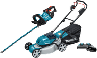 Mit dem Makita DLM463PT inkl. 5,0-Ah-Akku (2x) + Makita DUH602Z pflegst du deinen Rasen und deine Hecke bis in die Spitzen.