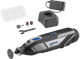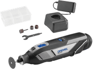 Mit dem Dremel 8240 - 5 12 V legst du dir ein gutes Starterset zu. Das Zubehör umfasst fünf Teile, mit denen du die meisten einfachen Arbeiten erledigst, wie zum Beispiel Schleifen und Trennen. Das Multifunktionswerkzeug hat einen 12-Volt-Akku, sodass du an jedem Ort arbeitest. Das Werkzeug erreicht dabei eine Leistung von bis zu 35.000 U/min und steht einem kabelgebundenen Werkzeug in nichts nach. Der Akku liegt dem Gerät bei, sodass du dich direkt ans Werk machst. Das mitgelieferte Zubehör lässt sich dank des EZ Twist Systems blitzschnell und ohne weiteres Werkzeug auswechseln. Darüber hinaus erhältst du eine Aufbewahrungstasche dazu, sodass du dein Multifunktionswerkzeug und das Zubehör ordentlich beisammenhältst. Da du dank des Softgrips kaum Vibrationen spürst, liegt das Werkzeug außerdem angenehm in der Hand.