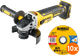 Mit dem DeWalt DCG405NT-XJ (ohne Akku) + DeWalt Trennscheibe INOX 125 x 1 x 22,2 mm 10 Stück erhältst du direkt einen Winkelschleifer und Schleifscheiben. Das 125-Millimeter-Schleifgerät verwendest du für alle Arbeiten im und ums Haus. Dank verschiedener Funktionen arbeitest du sicher. So entsteht dank des Rückschlagschutzes bei starkem Widerstand kein Rückschlag. Außerdem hört sich die Scheibe direkt auf zu drehen, wenn du das Gerät ausschaltest. Du passt den Seitengriff wunschgemäß an, wodurch du komfortabel arbeitest. Der Winkelschleifer gehört zum DeWalt XR 18V Akkusystem. Hast du bereits einen Akku dieses Systems zu Hause? Dann verwendest du ihn auch in diesem Gerät.