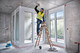 Platziere mit dem Bosch Professional GCL 2-50 G eine Säule oder hänge Regalböden gerade auf. Das Gerät ist ein Kreuzlinien- und Lotpunktlaser in einem. Du siehst daher nicht nur eine Kreuzlinie, sondern auch jeweils einen Punkt auf dem Boden und der Decke. Die grüne Farbe des Lasers ist jederzeit gut sichtbar, selbst wenn es sehr hell ist. Du verwendest den Laser in kleinen Räumen, da er bis zu 15 m weit leuchtet. Außerdem setzt du ihn dank des IP64 Staub- und Spritzwasserschutzes auch problemlos auf staubigen Baustellen ein. Das Gerät hat einen simplen Ein/Aus-Knopf und eine weitere Taste, sodass es einfach zu bedienen ist. Die mitgelieferte Drehhalterung hat einen starken Magneten, wodurch der Kreuzlinienlaser stabil sitzt.