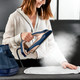 Ich mag auch die Lampe an der Vorderseite des Geräts. Ich bügle oft abends, und sie sorgt für zusätzliches Licht auf meiner Kleidung. Wenn man das Bügeleisen eine Weile nicht benutzt, schaltet es sich automatisch ab – eine tolle Sicherheitsfunktion. Danach heizt es sich sehr schnell wieder auf.