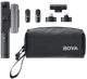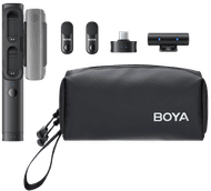 Das Boya Magic 02 für USB-C, Lightning und 3,5 mm ist ein kabelloses Mikrofon mit zwei Sendern, drei Empfängern und einem mitgelieferten Ladecase. So wechselst du ganz einfach den Empfänger und koppelst die Mikrofone an unterschiedliche Geräte, zum Beispiel an dein Smartphone oder deinen Computer. Das Mikrofon ist klein und leicht. Du verwendest es zum Beispiel als Ansteckmikrofon oder als Richtmikrofon, wenn du es direkt an deine Kamera anschließt. Mit dem mitgelieferten Zubehör verwandelst du es sogar in ein Handheld- oder PC-Mikrofon. Möchtest du das Mikrofon draußen verwenden? Die KI-Geräuschunterdrückung dämpft Hintergrundgeräusche in deinen Aufnahmen um bis zu -40 dB. So nimmst du auch außerhalb deines Studios ungestört Audiodateien für deine Vlogs, Interviews oder Podcasts auf.