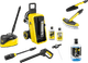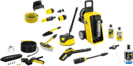 Mit dem Kärcher K7 Comfort Premium Komplett erledigst du alle Reinigungsaufgaben. Der Hochdruckreiniger hat einen Arbeitsdruck von 180 bar. Du passt die Kraft des Wasserstrahls mit der Sprühlanze an deine Aufgabe an. So spritzt du nicht aus Versehen Sand zwischen den Fliesen weg. Mit dem Flächenreiniger reinigst du deine Terrasse besonders gründlich. Da die Schutzkappe verhindert, dass Wasser herumspritzt, bleibt deine Kleidung trocken. Für dein Auto oder dein Motorrad verwendest du die Autowaschbürste und die Felgenwaschbürste. Die weichen Borsten verhindern Kratzer im Lack. Mit dem speziellen Reinigungsmittel für das Auto erhältst du ein strahlendes Ergebnis. In diesem Set befindet sich auch ein Rohrreinigungsschlauch, mit dem du Dachrinnen und Leitungen reinigst. Mit dem mitgelieferten Gartenschlauch schließt du den Hochdruckreiniger an deinen Wasserhahn im Freien an.
