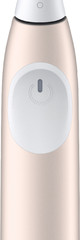Druck und Timer Der Ein-/Ausschalter verfügt über einen praktischen Drucksensor. Er zeigt mit einem roten Licht an, wenn ich zu fest aufdrücke, was sehr hilfreich ist, wenn ich zu kräftig putze. So vermeide ich Zahnschäden. Der Timer hilft mir, die zwei Minuten einzuhalten. Ich spüre eine kurze Pause dazwischen, sodass ich weiß, wann ich zum nächsten Viertel meiner Zähne übergehen muss. Dadurch kann ich ruhiger putzen und vergesse keine Stellen.