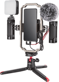Mit dem SmallRig Professional Phone Video Rig Kit filmst du professionelle Videos mit deinem Apple oder Android Handy. In diesem Set befindet sich alles, was du für scharfe Videos mit deinem Smartphone brauchst. Dank des Videokäfigs sind die gefilmten Aufnahmen immer stabil. Du verwendest ihn zum Beispiel als Stativ oder läufst damit problemlos umher, ohne dass das Bild verwackelt. Du erhältst eine LED-Lampe und ein Richtmikrofon in diesem Set. Damit filmst du immer mit einer guten Beleuchtung und nimmst realistischen Ton auf. Es ist egal, wann du filmst und wie viele Umgebungsgeräusche es gibt.