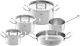 Mit dem Fissler Original-Profi Collection Topf- und Pfannenset 5-teilig + Servierpfanne 24 cm bereitest du jeden Tag komplette Mahlzeiten für die ganze Familie zu. Das Set umfasst crei Kochtöpfe, eine Servierpfanne und eine Kasserolle. Dank der Maßangabe misst du Flüssigkeiten ganz einfach ab. Mit den drei Kochtöpfen kochst du eine komplette Mahlzeit mit mehreren Gängen oder Beilagen. Mit der Servierpfanne servierst du am Tisch Gerichte direkt aus der Pfanne. In der Kasserolle bereitest du Soßen zu, erhitzt Milch und kochst kleine Portionen. Das gesamte Topf- und Pfannenset ist aus Edelstahl und für Induktion, Glaskeramik-Kochfelder, Elektrokochfelder, Gas und den Backofen geeignet. Der dicke Edelstahlboden verteilt die Hitze gleichmäßig, sodass Kartoffeln, Soßen und Gemüse gut durchgaren.