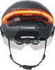 Mit dem ABUS HYP-E ACE Grau M bist du besonders sicher auf deinem S-Pedelec unterwegs. Der Helm verfügt über die obligatorische Zertifizierung nach NTA 8776 und schützt dich, wenn du bei hoher Geschwindigkeit stürzt. Außerdem bekommst du ein Visier und Ohrenschützer, die Wind und Insekten abhalten. So schützt du auch deine Augen und Ohren. Mit dem Front- und Rücklicht fällst du im starken Straßenverkehr und im Dunkeln gut auf. Das Blinklicht zeigt besonders deutlich an, in welche Richtung du fährst. Du bedienst das Blinklicht mit der mitgelieferten Fernbedienung vom Lenker aus. Entscheide selbst, ob du die Belüftungsöffnungen bei warmem Wetter, Kälte oder Regen öffnest oder schließt. Der Fahrradhelm passt auf Köpfe mit einem Kopfumfang zwischen 54 und 58 cm.