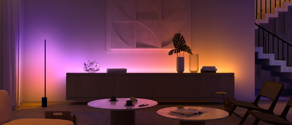 Philips Hue Play Lampen eignen sich perfekt zur Verbindung mit deinem Fernseher. Du hast die Wahl aus Lightstrips, Tischleuchten und Stehleuchten. Diese platzierst du ganz einfach um deinen Fernseher oder PC-Monitor herum. Manche Lampen tragen den Zusatz "Gradient". Das bedeutet, dass sie in mehreren Farben gleichzeitig leuchten und sich so synchron zum Bildschirm bewegen.