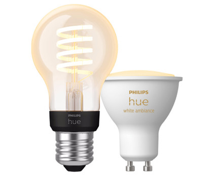 Diese smarten Philips Hue Lampen leuchten in allen Weißtönen. Möchtest du sie auch aus der Ferne einstellen und automatisch ein- und ausschalten? Dann wähle zusätzlich eine Philips Hue Bridge.