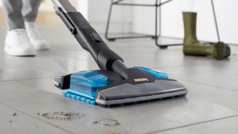 Mit diesem Philips AquaTrio Series 9000 saugst du sowohl Teppiche als auch Hartböden gründlich. Dank der Wischbürste entfernst du Staub, Haare, Krümel und Essensreste auf einmal vom Boden.