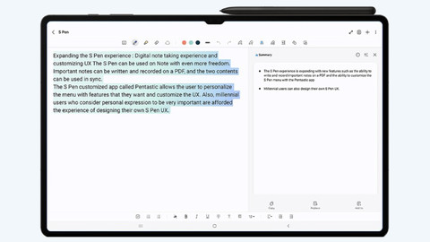 Galaxy AI ist der Smart Assistant von Samsung. Dieser intelligente Assistent erleichtert dir deine täglichen Aufgaben. Damit bearbeitest du zum Beispiel ganz einfach Fotos oder fasst lange Texte zusammen. Darüber hinaus hilft Galaxy AI dir bei der Übersetzung von Audiodateien und bei der Umwandlung von Audio in Text. Galaxy AI ist für das Samsung Galaxy Tab S11 Ultra, S11, S10 Ultra, S10 Plus und Tab S9 verfügbar. Möchtest du mehr über Galaxy AI erfahren? Dann klicke auf einen der folgenden Artikel.